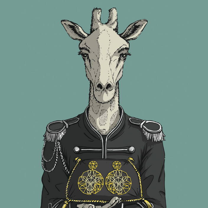 Monsieur Langhals präsentiert stolz die Ohrringe "Giraffe" aus der Kollektion animagus.